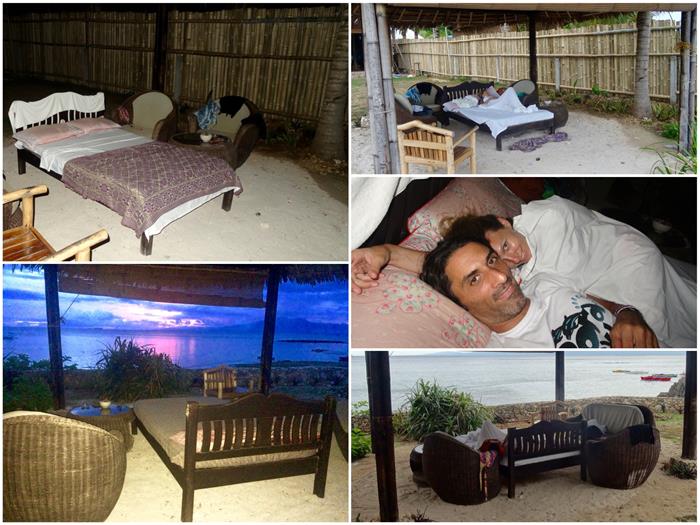 Hoy la guesthouse tiene todas las habitaciones reservadas, por lo que teníamos que dejar la nuestra, pero por una noche no queríamos buscar otro alojamiento; así que nos dejaron quedarnos en una cama que tienen cubierta con un tejado de paja, sin paredes, totalmente abierta, justo frente al mar.